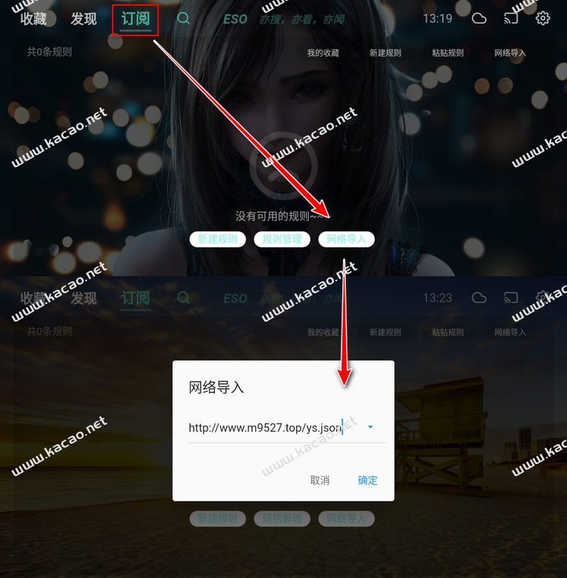 软件安装后,在【订阅】栏目里面,可以看到【网络导入】等接口导入方式,我们一般通过网络导入更加方便。